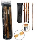 55" Wood Detachable Walking/ Hiking Stick With 3 Detachable Sections, Metal Tip