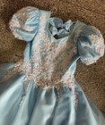 Vintage Girls Princess Pageant Dress Blue Beaded Puff Sleeves Costume 6