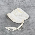 1930s Vintage Antique Baby Bonnet Cap With Embroidered Lace Ribbons