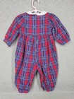Vintage Baby Bgosh Oshkosh Romper Girls Plaid Bear 12 Months Red Blue One Piece
