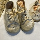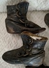 Antique Vintage Baby Childs Doll Leather Button Shoes High Top