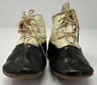 Vintage Victorian Doll Toddler Baby Size Black & White Lace Up Shoes