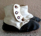 Antique Victorian Cream & Black Leather 9-side Button Child Spat Shoes Boots