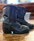 Vintage 1950s Black Leather Toddler Cowboy Boots With Cut Outs - Great Condition