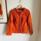 Vintage Hal Rubenstein Orange Suede Leather Jacket – Size M – Chain Trim Western
