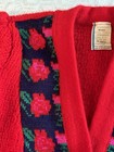 Vtg 80s Victorian Style Red Floral Rose Fancy Puff Sleeve Cardigan Sweater*18mos