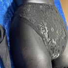 Vintage Hanes Lace Brief Pantyhose High Cut Sheer Black Nylon Stockings Size C-d