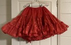 Vtg 50s Petticoat Slip Red Ruffled 2-layer Crinoline Drawstring Waist Very Full