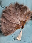 Antique Taupe Ostrich Feather Hand Fan W Faux Amber Plastic Sticks Burlesque