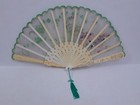 Antique Victorian Fan Hand Painted Silk And Wood Signed E. Bayard