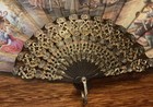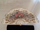 French Art Deco Celluloid Fan Hand Painted Floral Pierced Gilt Antique Fan