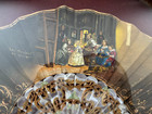 Antique Victorian Folding Hand Fan Painted Panels With Romantic Scene 6"x11.5"