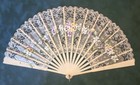 Antique Hand Sewn White Lace With Hand Painted Celluloid Handle Folding Hand Fan