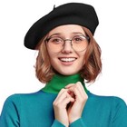 French Beret-classic Wool Beret Solid Color Womens Beret Cap 7 1/8-7 3/8 Black