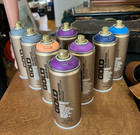 Lot Of 8 Cans Of Montana Gold Spray Paint Lakers Violet, Gravel, And More