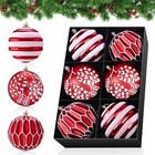 6 Pcs Red And White Christmas Ball Ornaments - 3.94 Inches Large Christmas