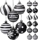 12 Pcs Black And White Christmas Ornaments,2.4 Inch Glitter Halloween