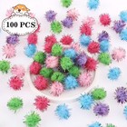 200pcs 1/2" Multicolor Cat Balls Toys - Assorted Pompoms, Fuzzy Pom Poms, Gli