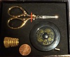 Embroidery Scissors Italy Klasse Gold Plated 3 Pc Thimble Tape Measure Gift Box
