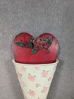 Vintage Valentine’s Day Metal & Wood Wall Planter Pocket Pink & Red Rose 13”