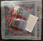 Vtg 70s Bucilla 6299 100% Linen Stamped Cross Stitch Tablecloth & 6 Napkins New