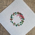 Finished Completed Cross Stitch Summer Red And Blue Ivy Wreath Piece
