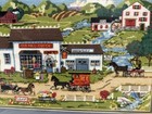 Beautiful Vintage Framed Needlepoint Brookside Village 25 1/2”x 20” Carriage