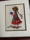 Set 2 Signed Vintage Completed Punch Needle Work Embroidery Girls Framed Wall
