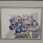 Vintage 90s Handmade Punch Embroidery Hydrangea Flowers Boho Floral Framed Art