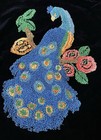 Vintage Punch Needle Embroidery Peacock On Black Velvet Fabric Colorful Tapestry