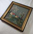 Vintage Chinese Silk Art Thread Embroidered Needlework Asian Landscape Pagoda
