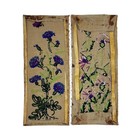 Vintage Purple Blue Green Botanical Crewel Art Floral Insect Burlap Pair 27”x11”