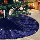 36 Inch Blue Small Christmas Tree Skirt, Sparkle Sequin Tree 36 Inch Navy Blue