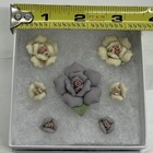 Small Purple & White Clay Flower Set Of 7 Handmade Colored & Fired A1