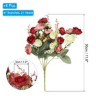 4pcs 7 Branch 21 Heads Artificial Silk Rose Flower With Stem For Decor Red