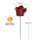 50pcs Glitters Roses Artificial Flowers Fake Roses With Stems Red
