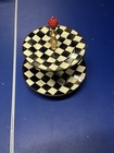 Preowned Mackenzie Childs Courtly Check Enamel Small 8" Pedestal Cake Platter