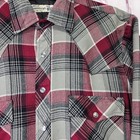 Vtg Roebucks Genuine Plaid Pearl Snap Button Western Shirt Burgundy Grey Men M