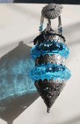 Moroccan Hanging Lantern Silver Tone With Hand Blown Blue Glass 9" Lantern