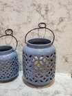Led Metal Outdoor Patio Deck Blue Metal Lanterns With Remote Control Set Of 2