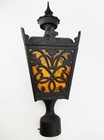 American Lantern Post Light Spanish Revival Black Amber Glass 24" Vintage