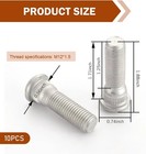 10pcs Wheel Studs, M12x1.5 49mm Long Vehicle Wheel Steel Lug Bolts, Steel Ti