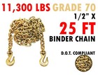 1/2" X 25ft Grade 70 Transport Chain W/ Grab Hooks Dot Approved Wll 11,300 Lbs