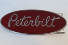 Vtg Oem Peterbilt Oval Truck Red Enamel Solid Metal Hood Emblem 8"