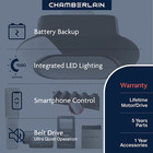 Chamberlain 3/4 Hp Led Smart Quiet Belt Drive Garage Door Opener Wbattery Backup
