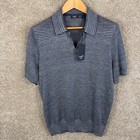 Faherty Mens Medium Linen Sweater Polo Shirt Navy Grey Stripe Short Sleeve New