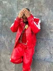 Men's Genuine Leather Track Suit Sweatsuit Red And White Casual Wear