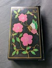 Vintage Asian Black Lacquer Butterfly Floral Jewelry Box Pull Out Mirror 6x3.5"