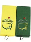 2 Pack - Green And Yellow Augusta Masters Embroidered Golf Towel With Clips Angc