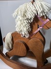 Wooden Doll Size Rocking Horse Pony White Yarn Mane Oak Kids Toy 15 1/2" Tall